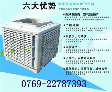 全新特點 1.節能:耗電量只有傳統壓縮式空調機的十分之一。 2.空氣清新、排除異味:室外的空氣經系統過濾和降溫,送出清新、潔凈、低溫、富氧極高的空氣, 讓您更心怡,克服傳統空調頭暈,頭痛的“空調病”。 3.投資少,初裝費用低。 4.維護成本低,經濟耐用。無須專業維護人員。 5.環保不含氟里昂,無污染 即節能又環保,投資費用又低,占地面積小,安裝簡易等特點。保證給車間一個會呼吸的空間。