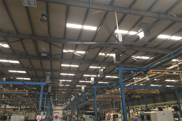 5、安裝不影響工作:風扇安裝在離地面5.5米以上的上部空間,通過卡夾方式固定在屋面結構梁上,不會影響任何地面工作區域正常工作進程,安全可靠。
