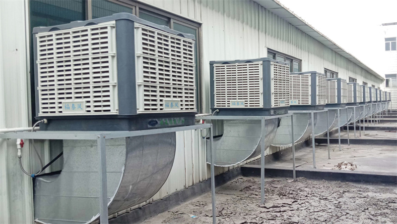 福泰環保空調剛好可以做到通風、換氣、制冷、以通風換氣為主,針對有氣味的高溫車間有很明顯的效果,制冷是用水分子蒸發降溫的原理,由于水蒸發要吸收空氣中的熱量,從而把空氣中的溫度降低,送到車間會感到很涼爽。